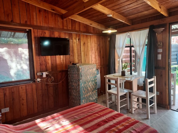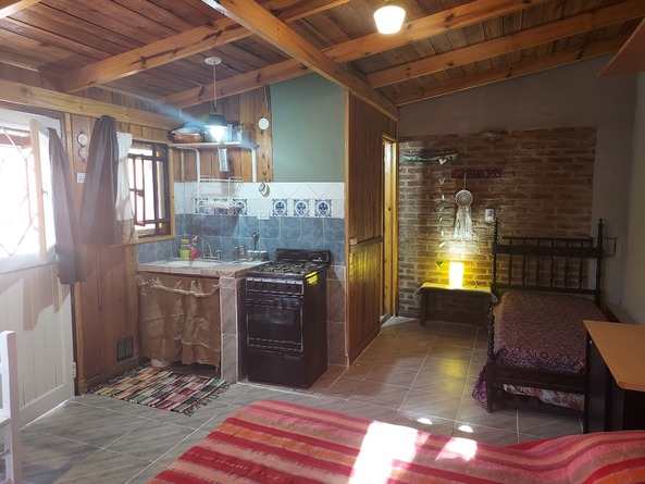 hermosa cabaña desde 1 a 4 personas ,monoambiente con una cama de 2 plazas y dos de una plaza ,, parrilla,parque, quincho a 9 cuadras del centro y a 9 de la playa , a una cuadra de centro comercial , un lugar hermoso para relajarte y estar ligado a la naturaleza . instagram onelovemiramar
