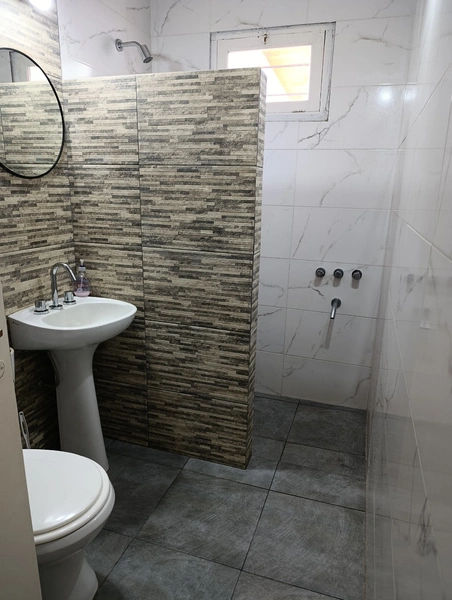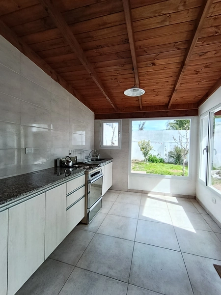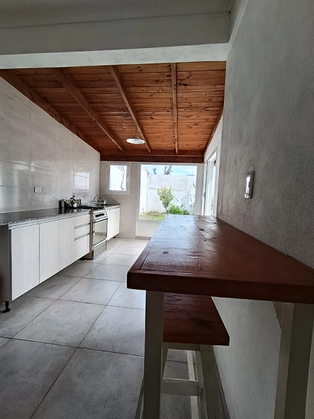 El baño es amplio y cómodo, y la casa está equipada con gas natural, calefacción, microondas, heladera con freezer, WiFi y TV.