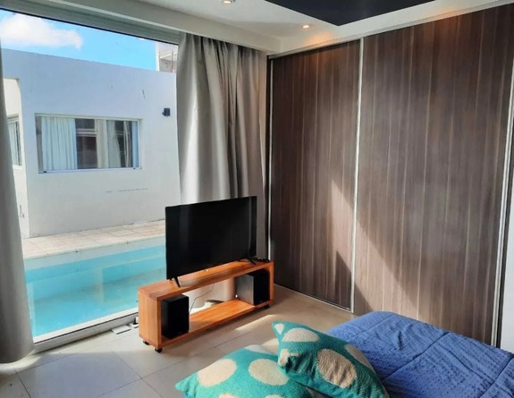 Hermosa casa con piscina en barrio cerrado las lomas de Miramar, apta para 2 a 4 personas. 2dormitorios, uno en suite, 2 baños. Wi fi, alarma. No sé admiten mascotas. Se alquila por quincena o por mes.
