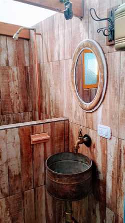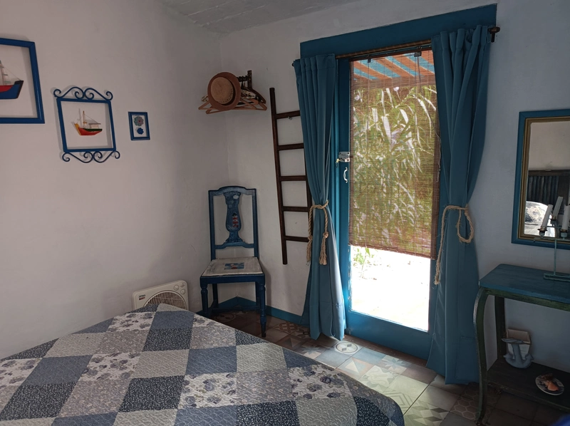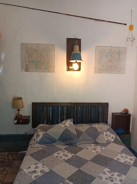 Casa con 2 cuartos pequeños con cama matrimonial y otro ambiente con 2 camas individuales.2 baños.