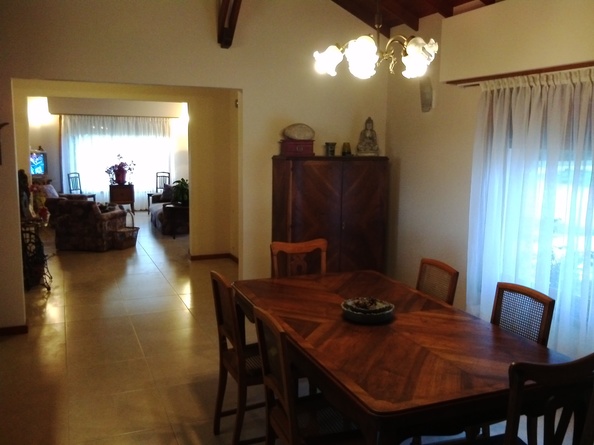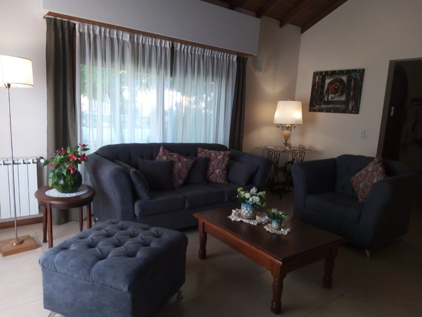 Casa de 3 habitaciones muy grandes una en suit con aire, living, comedor ,cocina,garaje,2 baños completos y parrilla con patio techado. Gran jardín cerrado con entrada para un segundo auto. Wifi , alarma, seguro, cable, Smart tv en habitación principal y living. Pileta.