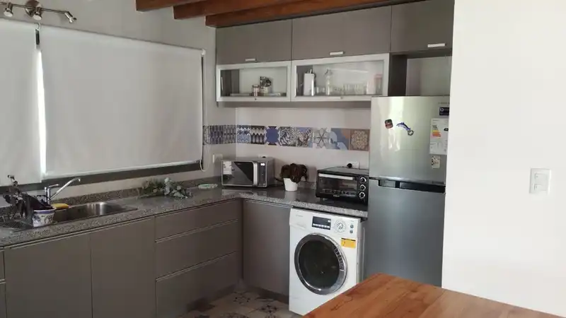 Casa de 3 habitaciones, 2 baños, cocina comedor integrada (amplia), patio, parrilla, techo cubierto para 2 vehículos. Wi-Fi, TV, Aire Acondicionado.