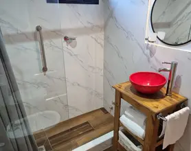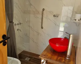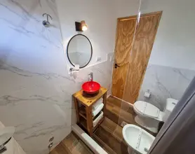 Baño moderno y funcional, de diseño compacto para brindarte máximo confort y una ducha reparadora con agua caliente ilimitada, toallas suaves y los elementos de tocador para que no tengas que preocuparte por nada.