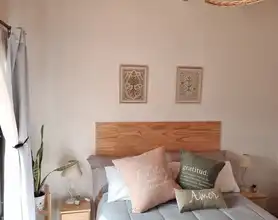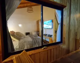 Dormitorio: Habitación acogedora con sommier de alta calidad, ropa de cama suave y cortinas blackout para que puedas dormir plácidamente. La casa incluye también 2 camas en sillón sommier en el living.
