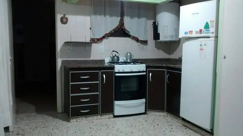 Dpto planta alta.Por escalera.No es edificio.Garage cubierto.2 dorm. Balcón.Helad con freezer.Microondas.Deck con parrilla.Lavad cubierto con lavarropas.Wifi.Gas natural.Dtv funcionando,no con tarjeta. Dpto de 65 m2. Vajilla completa. Hasta 5 personas. Estacionamiento sin ser medido. Barrio consolidado con asfalto. A 5 cuadras del centro. A 10 cuadras de la playa.