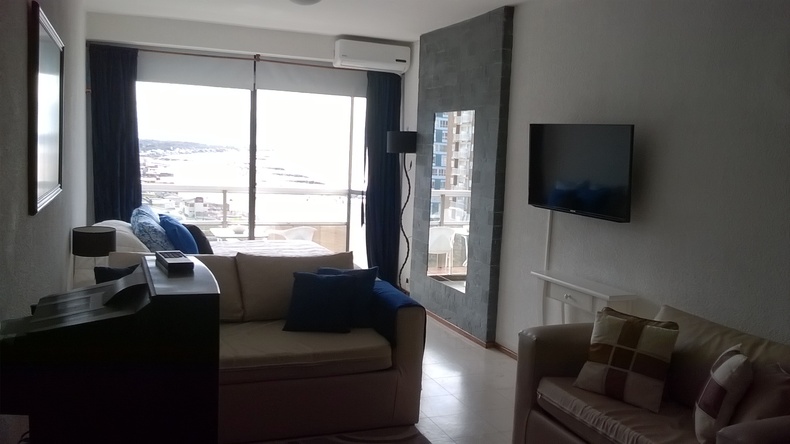 Departamento calle 12 y 23, cruzas y esta la playa, de 1 ambiente,7° piso con balcon vista al mar y ciudad, moderno 40mts, aireacondicionado,somier 2plazas, 2 sofas camas de 2 y 1 plaza, baño completo,secador de pelo y duchador. Cocina americana (Kitchenette) con heladera bajo mesada