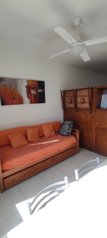 Ambiente dividido: Hay 2 divanes con cama carro (todo de 1 plaza-hasta 4 plazas). No hay cama matrimonial. Termotanque electrico y cocina de 2 hornallas vitroceramica.