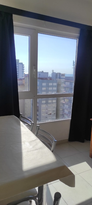 Monambiente de 34 m2 con kitchinette. Ubicado en el Edificio Playa II en piso 14 con amplia vista, muy luminoso. A solo 80 m del mar y 100 m de la peatonal.