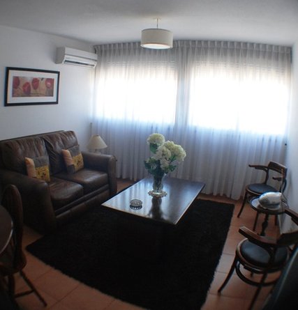 Living con cómodo y amplio sofá en cuero de 2 cuerpos y sillas anexas. Aire acondicionado frío-calor. Mesa comedor para 6 comensales. TV LCD c/ Televisión con cable, DVD, radiograbador.