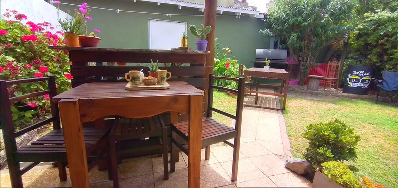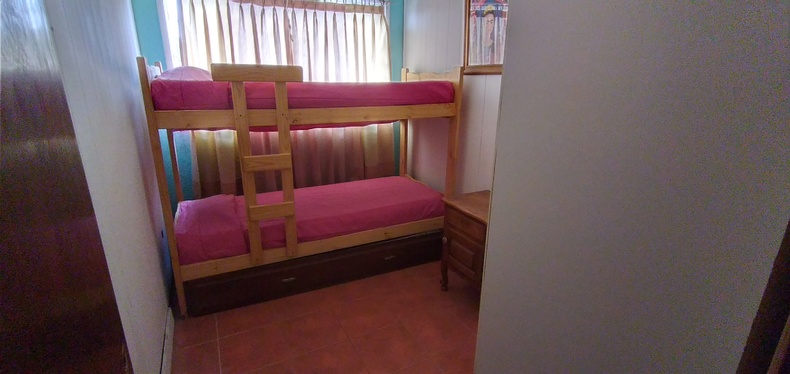La casa cuenta con dos habitaciones, living,cocina comedor ,un baño,dos habitaciones, una con cama matrimonial y la otra con cama cucheta y una marinera. Jardín con parrilla.Se encuentra a 2 cuadras del río, 10 cuadras del centro y a 12 cuadras de la playa .