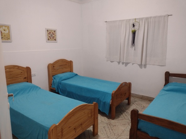 Casa en alquiler temporario. Está ubicada en Necochea. Posee dos habitaciones muy amplías . Una tiene cama doble y la otra 3 camitas simples, living con Tv, wifi, cocina muy amplia, equipada de horno microondas, heladera con freezer. Toda equipada con vajilla , ollas, fuentes platos.. patio delantero. El barrio es.muy tranquilo. Estamos a 15 minutos de la playa.. Si no tenés auto el cole pasa a una cuadra y te conecta a toda Necochea y Quequen. Está ubicada a 15 cuadras de la hermosa ribera del río Quequen. Es un barrio ideal para descansar. No se aceptan mascotas.