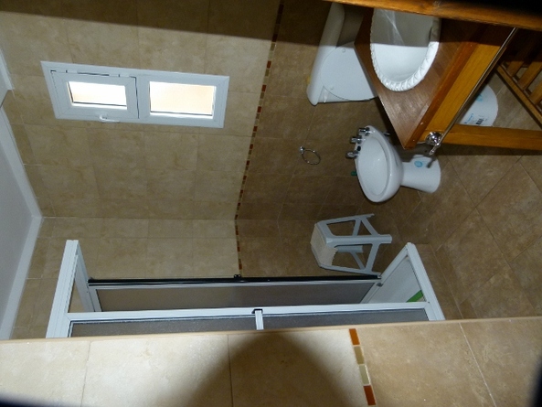 Habitación con dos cuchetas y una cama individual en palier, otro baño.