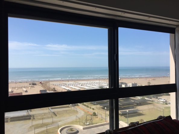 Excelente vista, frente al mar, a una cuadra de la peatonal. Dos habitaciones, dos baños living, cocina, balcon con vista al mar.