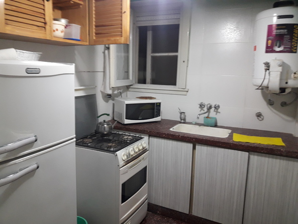 habitación con cama doble y cama chica, placard amplio, living comedor grande con sillón que se hace cama (3 camas mas), cocina amplia con microondas, heladera con freezer, etc., patio con parrilla, baño completo, tv, wifi,aire acondicionado.