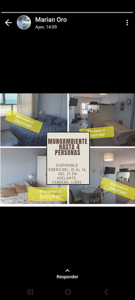 frente al mar. A 2 cuadras de la principal peatonal. Vista hermosa