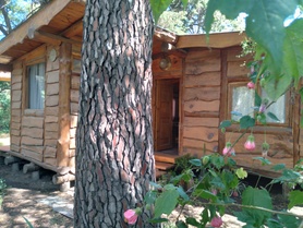 Cabaña para 4 personas, totalmente equipada. Dos habitaciones. Microondas, cocina. Heladera. Wfi y DirecTV. Predio cerrado e individual. Parrilla. Ubicada en zona muy arbolada, a cuadras del bosque y la playa.