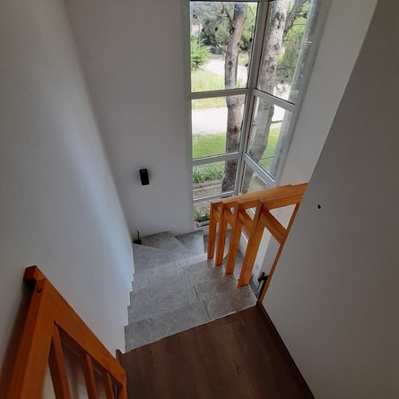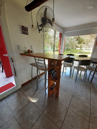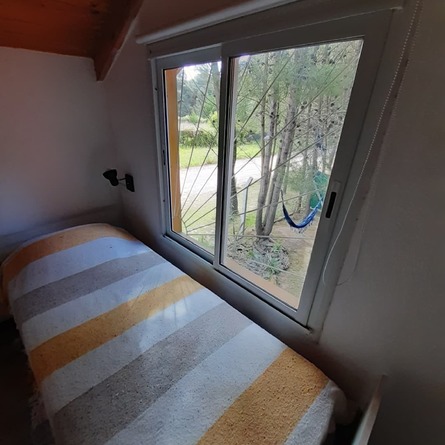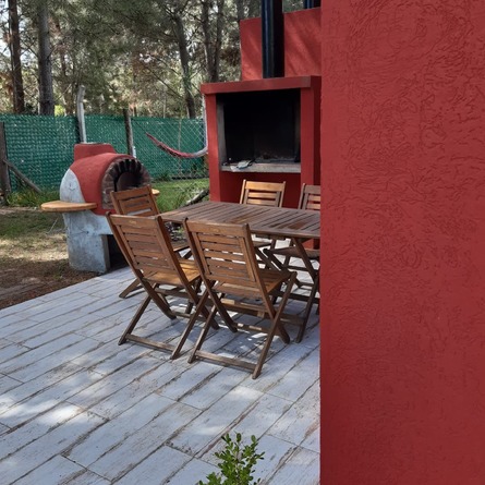 Cabaña para 4 personas en villa del deportista. Consta con 2 habitaciones , en una una cama matrimonial y en la otra dos habitaciones. En cada planta tiene un baño. Esta totalmente equipada .consta de parrilla y entrada para más de un vehículo. En un entorno totalmente natural con grandes ventanales lo cual te ayuda a disfrutar del hermoso entorno. A 3 cuadras te internas en el bosque con un alucinante camino entre pinos con acceso al mar. Ideal para disfrutar de playas extensas. El valor es sin blanqueria pero esta la opción de tomar con blanqueria tb lo cual se abona adicional