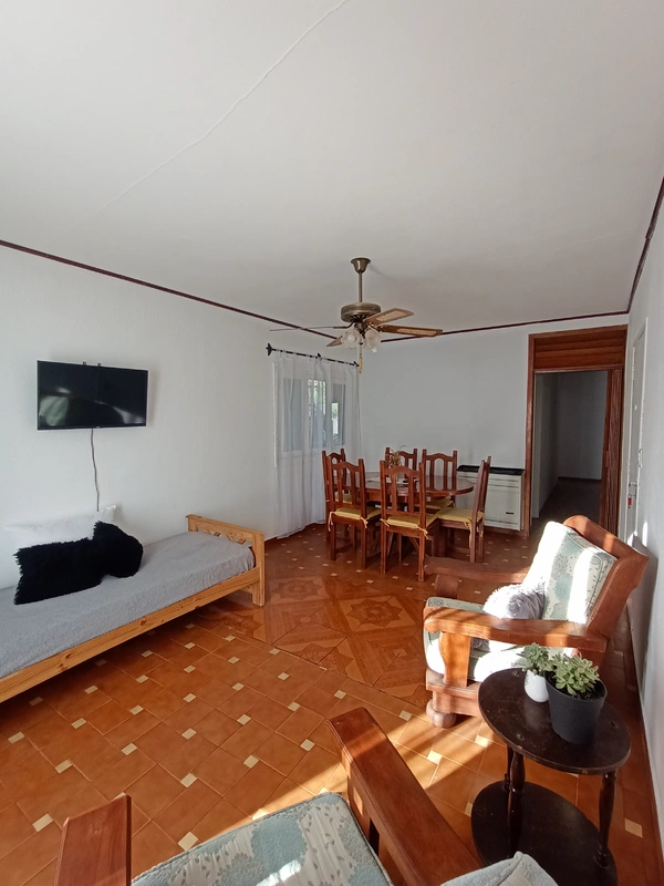 - Estar-comedor equipado con Smart TV de 32", ventilador de techo y cama marinera.