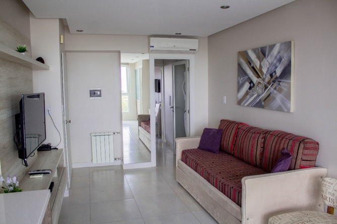 Conforme con: Muy buena atención de Sonia. Estética del departamento muy agradable. Muy buena vista al mar en el piso 11. El baño bueno. Gran cantidad de prestaciones (micro ondas, lavarroppa, licuadora, secador pelo etc). Posiblemente para completar las virtudes falte algún lugar donde colgar la ropa, pero esta acorde con el precio
