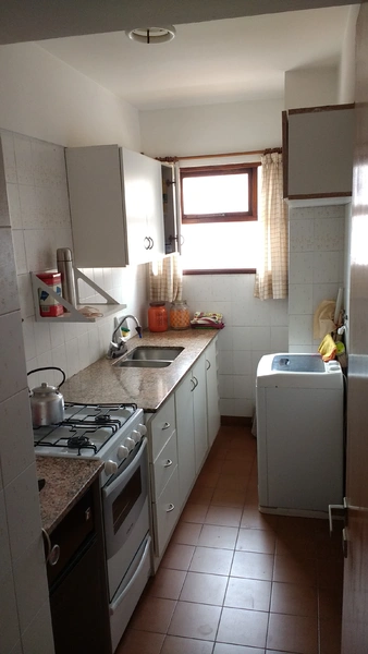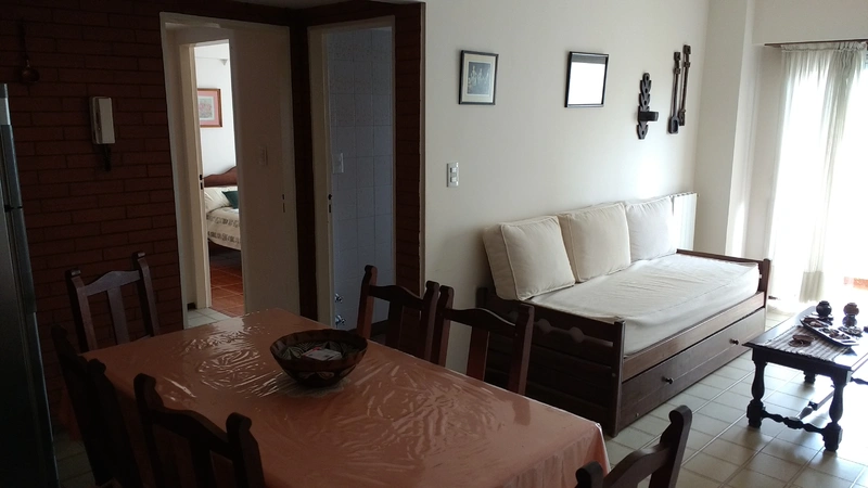 Departamento para 4 personas, un dormitorio con cama matrimonial, living comedor amplio con cama marinera, baño, cocina (con horno, pava eléctrica, microondas, heladera). Balcón con vista al mar. Cochera para auto, televisión por cable, WI-FI. No se aceptan mascotas