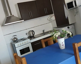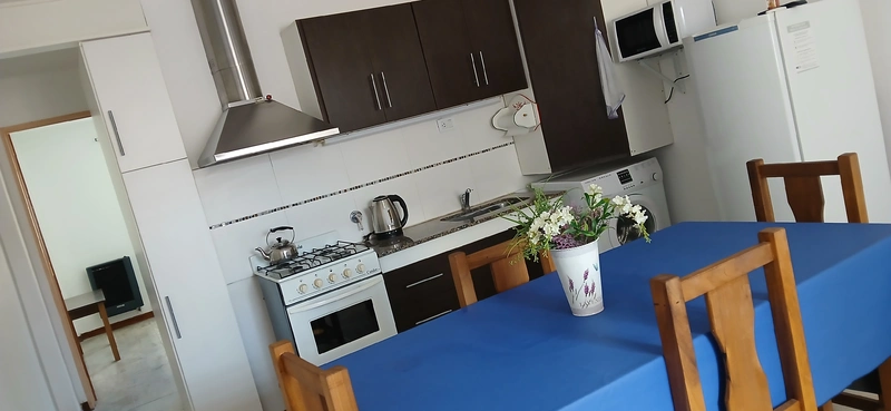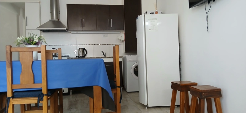 Cocina/comedor: cocina a gas natural con horno, heladera,pava eléctrica, lavarropas, microondas y televisor y cama marinera de una plaza para dos personas.