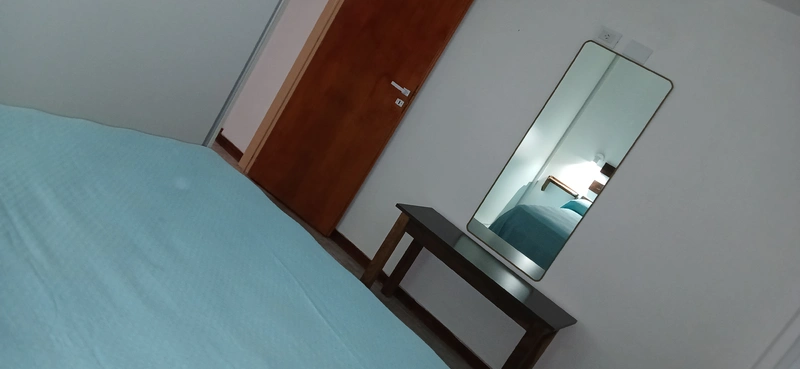 Una habitación con cama de dos plazas, placar amplio,