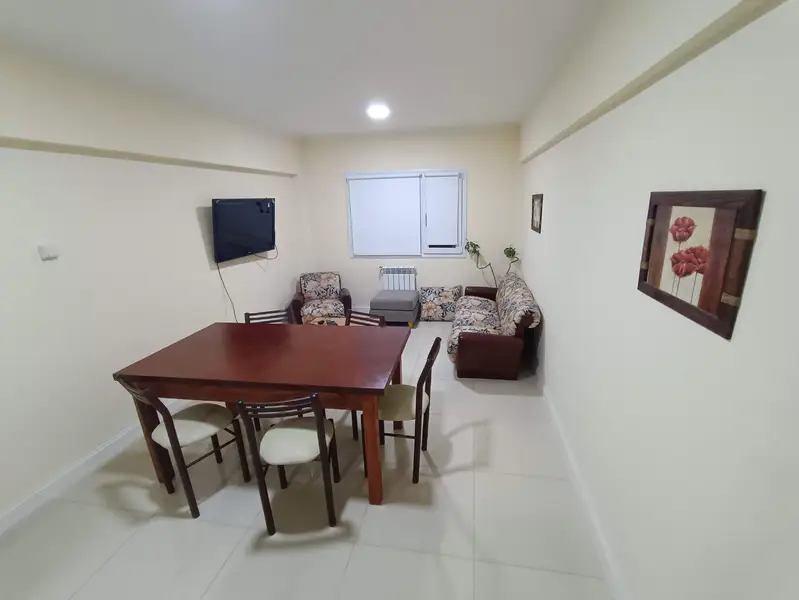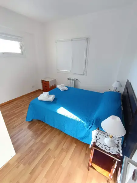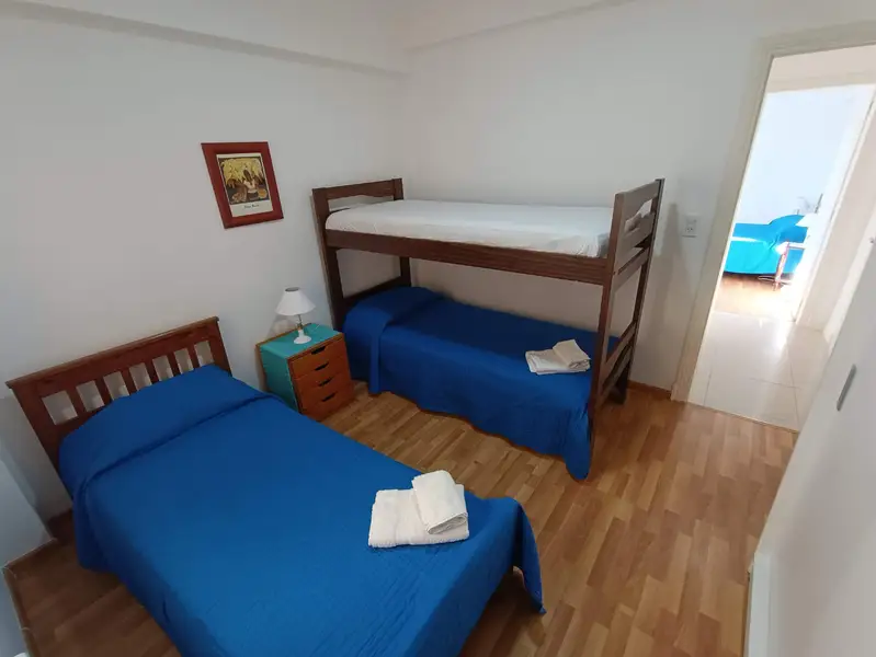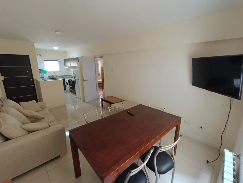 Estas unidades intermedias cuentan con 2 dormitorios, uno con sommier matrimonial y el otro con cama single y cucheta. Living comedor y cocina integrada con barra.