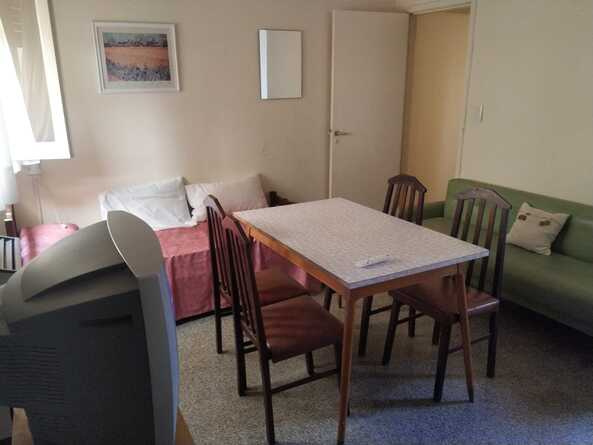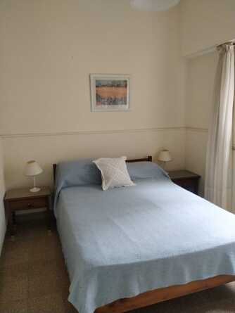 Dpto en planta baja 1 cuadra del mar para 4 personas, 1 hab con cama matrimonial, comedor con cama, divan cama, cocina con microondas, termotanque, heladera, baño, patio pequeño, directv, wiffi