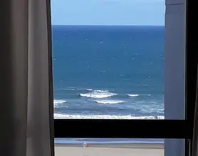 Dueña alquila magnífico 2 ambientes con vista al mar para tres personas, frente a las mejores playas del centro, a 1 cuadra de peatonal 83. Living comedor, con lcd 32″, cable, WiFi, sillón cama rebatible de 2 plazas. Cocina integrada, heladera con freezer, microondas, vajilla completa. Amplio dormitorio alfombrado, Lcd 32”, balcón con cerramiento. Baño con bañera. El edificio cuenta con un sector de parrillas en planta baja y cámaras de seguridad.