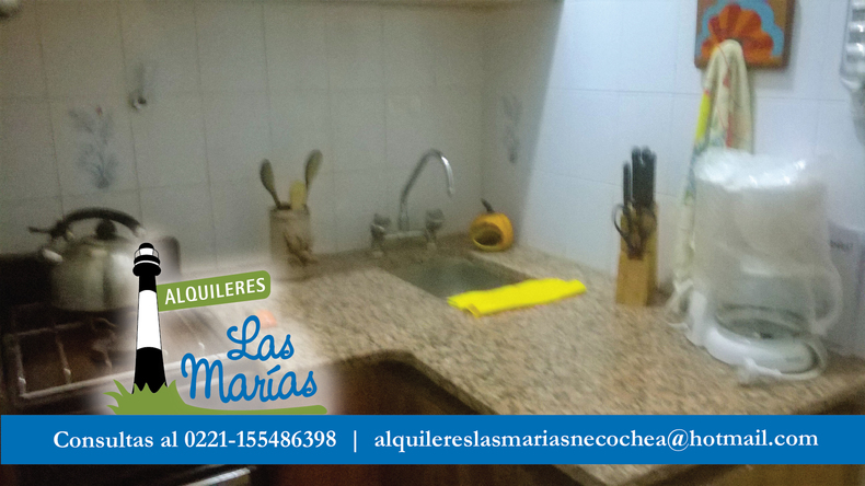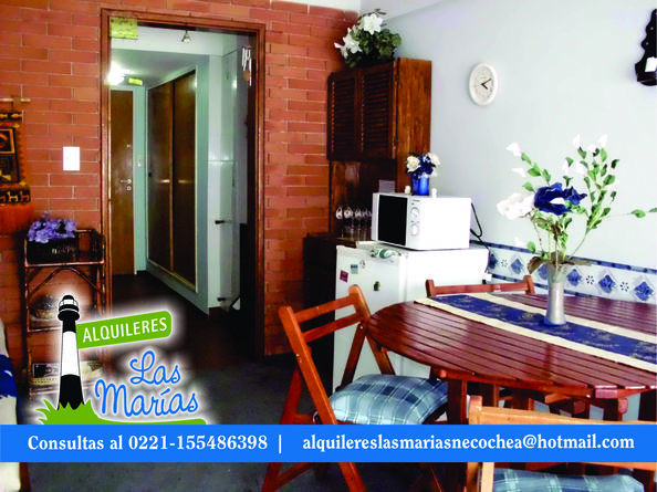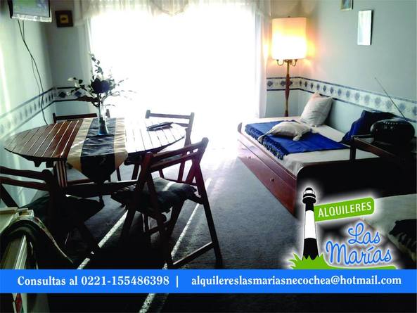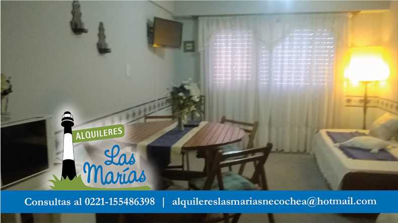 Alquileres Las Marías Necochea, alquila un monoambiente (no cuenta con dormitorio) en Edificio Torre Manquelazo. Ubicado en pleno centro, sobre Av. Costanera. Frente al mar, un lugar ideal para