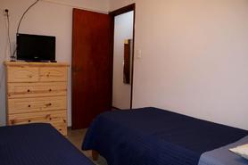 Departamento tres ambientes para 4-5personas, en el piso 3. Ubicado a tres cuadras de la playa y dos de la peatonal. Tiene un living amplio con cama marinera (que no aparece en las fotos) y un televisor con cable y wifi, cocina completa con microondas y pava eléctrica, dos cuartos , uno con cama matrimonial y otro con dos camas individuales, ambos poseen televisores, baño completo.