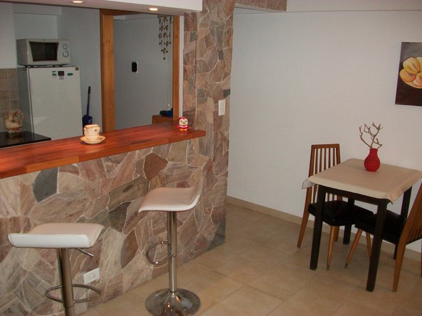 Decorado con detalles de buen gusto, barra desayunadora con pared de piedra, luces dicroicas y modernas banquetas. [utilice el form. o tel. de contacto]Vajilla necesaria para tu estadía, microondas,2 tv, cable, internet wifi . Sommier de 2 plazas en el dormitorio, sofá cama de 1 pl en el estar. [utilice el form. o tel. de contacto]PARA 3 PERSONAS ADULTAS , NIÑOS A PARTIR DE 12 AÑOS.