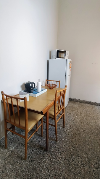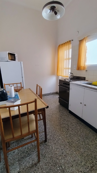 Comodidades: 2 dormitorios con amplios placares (1 dormitorio con cama matrimonial, 1 dormitorio con 2 camas individuales y 1 cama para armar); 1 baño; cocina separada equipada con 5 juegos de vajillas completos, heladera con freezer, microondas y cocina con horno; living/comedor con sofá, y un pequeño patio con lavadero. NO cuenta con garaje. A 50 metros se encuentra una cochera con precios económicos.