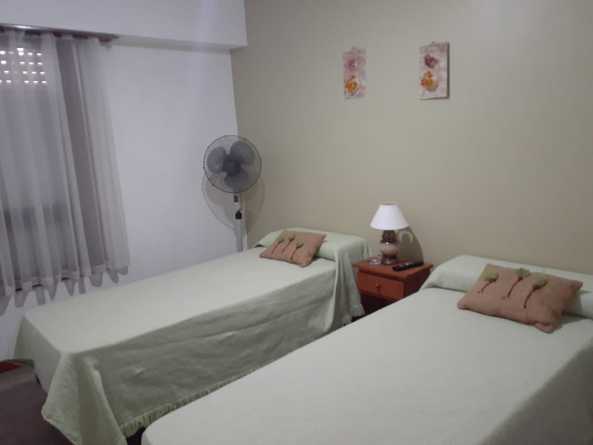 5Alquiler temporario de departamento para hasta 6 personas, posee una habitación con cama de 2 plazas y placard, otra habitación con dos sommier de una plaza y dispone en el comedor de futón de dos plazas. Cuenta con heladera con freezer, tv color con cable, tv led de 32 en cada habitación, wifi, microondas, ventilador de pie, termotanque,mesa de comedor con 6 sillas, vajilla y elementos necesarios de cocina. Posee vista lateral al mar. El edificio cuenta con dos ascensores inteligentes , cámaras de seguridad y control de acceso con seguridad.