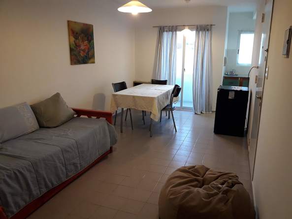 Alquilo Departamento de 1 dormitorio, baño c/bañera, living-comedor y cocina. Sommier de 2 plazas, en living sofa con 2 camas, mesa para 4, cocina, heladera, microondas, cafetera, pava eléctrica y tostadora. Aire acondicionado, WIfi y Cochera.