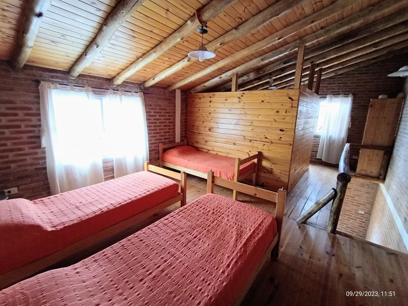 Cuentan con dos plantas, tienen capacidad hasta 5 personas. En primera planta se encuentra la cocina comedor y en planta alta una cama matrimonial y 3 camas individuales.