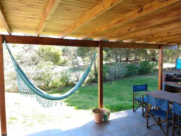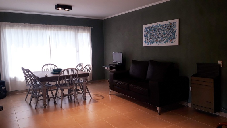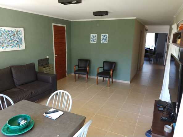 gran living, amplia y moderna cocina completamente equipada con desayunador. Comedor. Toilette de recepción. tres Dormitorios, uno con cama matrimonial, otro tres camas individuales, y otro con dos camas. un baño completo compartimentado. El jardín con galería techada con parrilla, Este año incorporamos una pileta de 6 x 3 mts de 1.40mts de profundidad. El estacionamiento privado semicubierto está en el interior del terreno, al que se accede por un portón de rejas. equipamiento: alarma monitoreada, perímetro alambrado con rejas y portón al frente, Direct TV, wi-fi, gas natural, aire acondicionado, teléfono para llamadas locales, 2 TV led, lavarropas automático, heladera con freezer, microondas, pequeños electrodomésticos. Capacidad total: 7 personas.
