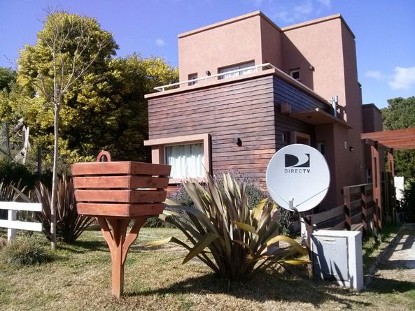 Casa con cuarto matrimonial en suite, amplio estar comedor, cocina, lavadero, parque, parrilla. En entrepiso dos camas, terraza. Ideal para descansar. Directv, wifi prepagos. Cochera semicubierta. Alarma perimetral monitoreada.