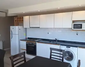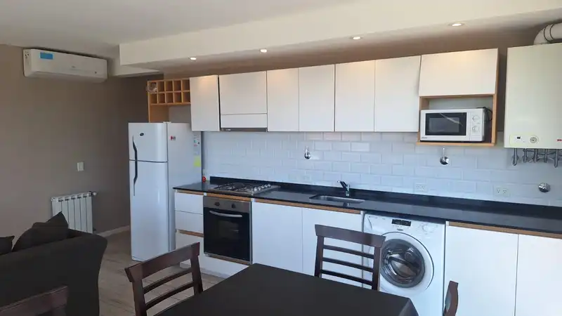 Cocina moderna y completa integrada con salida al balcon terraza con parrilla.
