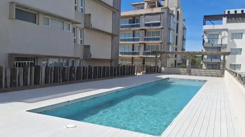 El edificio de contruccion moderna, tiene amplio solarium con Piscina.