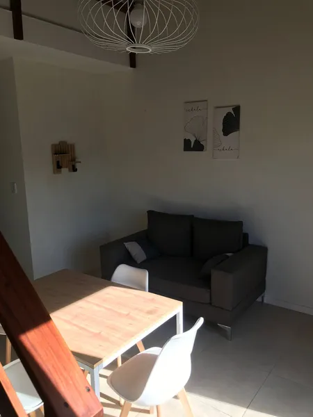 El living posee un sillón de dos cuerpos, TV S-mart de 42" y aire acondicionado frío/calor.