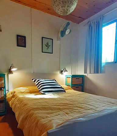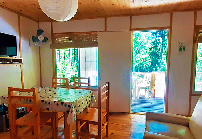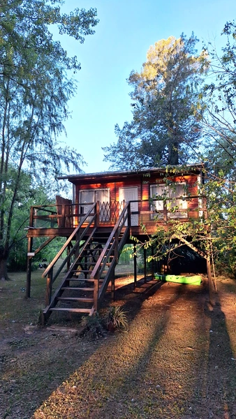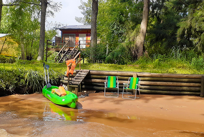 Cada cabaña tiene un kayak doble y salvavidas, 2 sillas plegables de aluminio, hamacas paraguayas, mesa con sombrilla y sillas plásticas para el parque y parrilla individual con bolsa de carbón.