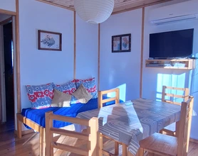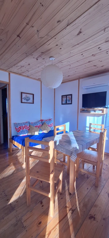 El living tiene un sofá tipo cama y Aire Acondicionado frío/calor. Cuenta con un Smart TV con DVD y varias películas para elegir, TDA y WIFI. Cartas y juegos de mesa para disfrutar el atardecer en el deck.