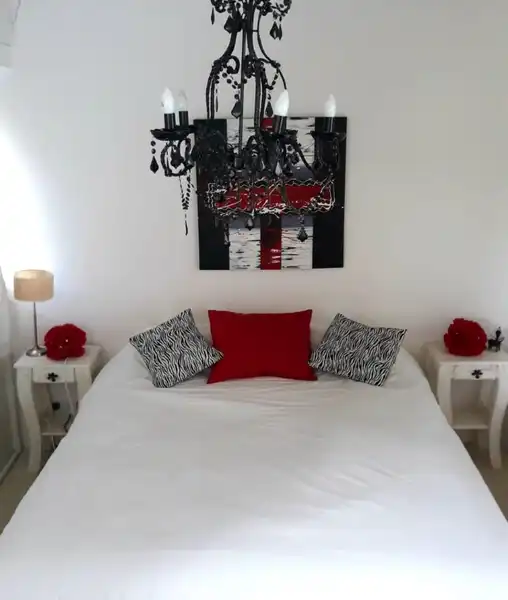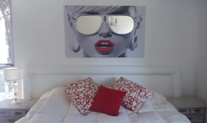 Cuarto matrimonial en suite con vestidor, sala de estar y Tv.