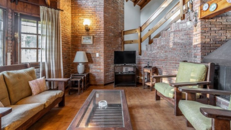 El chalet cuenta con dos plantas. En planta baja encontramos el living en desnivel con ventanal al frente, amoblado con juego de sillones, mesa ratona, TV LED con DIRECTV y hogar a leña con salida doble. El comedor cuenta con cómodo juego de mesa y sillas, aparador y puerta ventana con salida al parque. En este mismo nivel encontramos la cocina independiente totalmente equipada con heladera, freezer, cocina a gas, horno eléctrico y microondas, el alquiler incluye juego de vajilla completa. La cocina cuenta con lavarropas y salida al garaje cubierto.