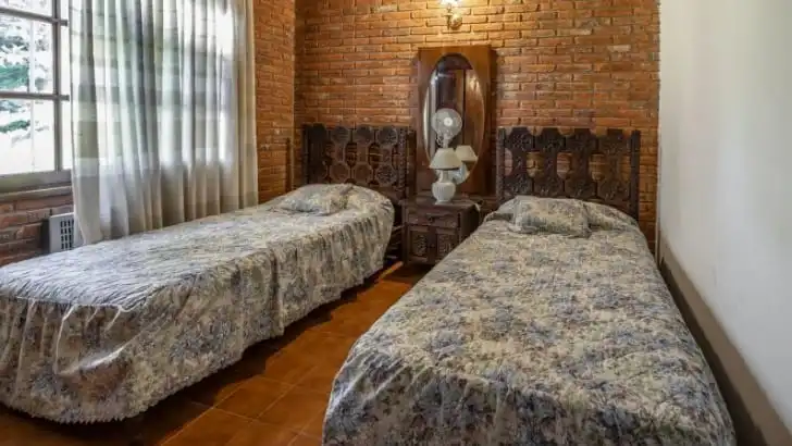 En planta baja también contamos con un baño completo, habitación con dos camas individuales, placard y ventana al frente, habitación principal con cama matrimonial, placard y cómoda y baño completo en suite.