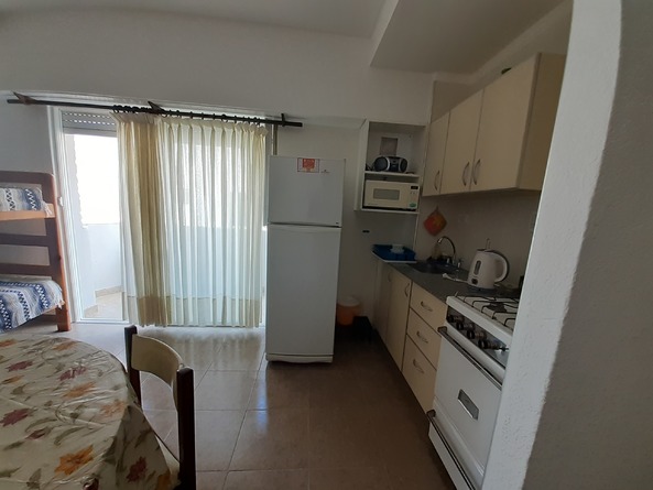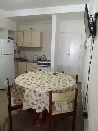 1 dormitorio con cama matrimonial . 1 cama cucheta en comedor con 2 colchones de 1 plaza. Cocina equipada . Cocina con horno a gas natural. Vajilla completa. Instalación Eléctrica disyuntor y 2 térmicas. Microondas. Heladera con freezer. Termotanque eléctrico. TV LED con cable. Ventilador de Pie. Baño completo nuevo . Tender de aluminio