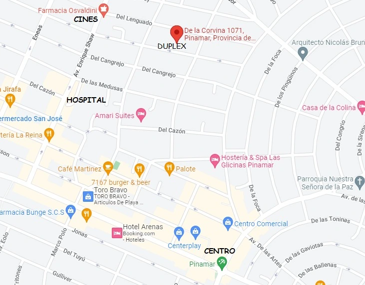 Esta ubicado en la calle corvina e/ entre centauro y Av del valle fertil. A 1 cuadra y media de los cines de pinamar y a 6 cuadras de el centro comercial (Av. Libertador y Av. Bunge).