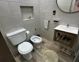 El dúplex cuenta con 3 dormitorios, cada uno con un tv, la cama matrimonial es king zize, baño completo en el primer piso, living, comedor, cocina, toilette y patio con parrilla.