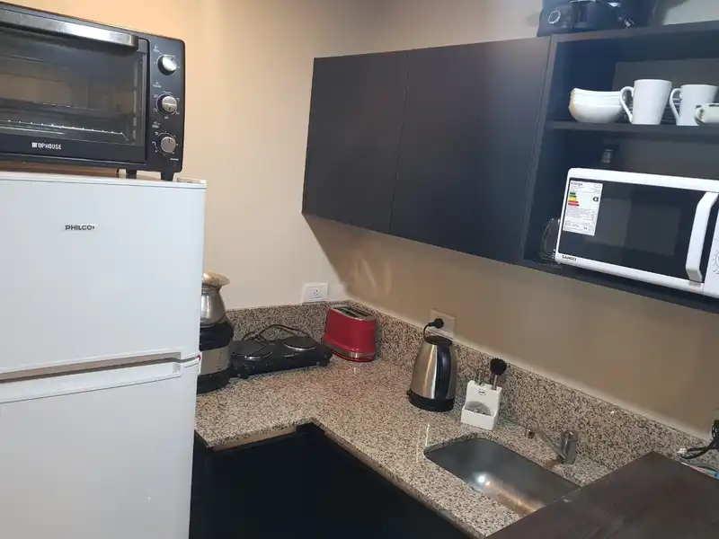 -Cocina totalmente equipada con heladera, anafe eléctrico de 2 hornallas, pava, freidora, olla, horno ,microondas, lavasecarropas, ,tostadora y cafetera de capsulas.